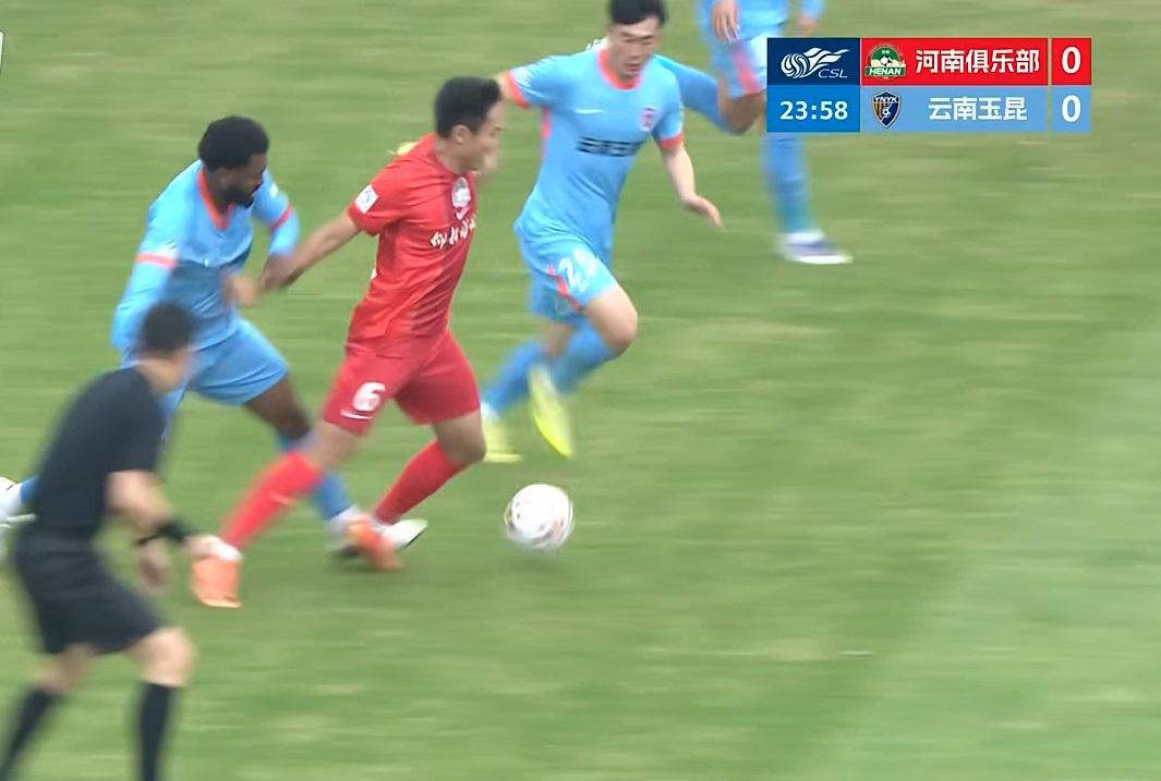 第49分钟,古斯塔沃妙传姆布拉,姆布拉单刀情况下与鲍亚雄身体接触后在对方禁区摔倒,姆布拉表达抗议,但主裁判沈寅豪并未理睬。对方旋即反击中将球打进,河南队长王上源等多名球员提出质疑,奈何VAR只给出云南此次反击是否越位的镜头,对此前姆布拉在对方禁区倒地并未给出清晰镜头和解释,姆布拉是否被犯规成了疑云。